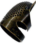CLOVER-Open Sided Thimble-Small. Thimble is made of brass. Features: adjustable open side that fits your finger comfortably. Designed with an open top to keep your finger from perspiring. Dimpled for easy use on needles. Suited for people with long fingernails.