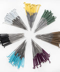 Pick the type of needles you want. Choose painted or unpainted in packs of 7 or 25. All needles come in a cute paper tube with a "cheat sheet" on the back, so you know what type of needles you have and what they are recommended for.