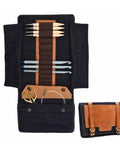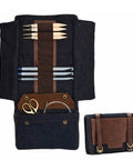 Store & organize interchangeable needles in style with the Taylor needle case. Crafted from denim & vegan leather, the case has a belt closure & easily tucks into totes or project bags. Case measures 4.5” long x 4” wide.
