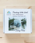 This needle felting kit includes everything needed to make one beautiful yet petite winter landscape. Perfect for a windowsill, little shelf, or work space. Learn how to "paint with wool" without a big investment.