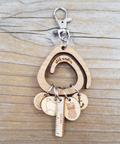 Add some special knitting themed bling to your project bag! These Stitch Marker Holder Fob Clips are a cute thing to attach to a zipper or loop on your project bag. Easily slip on and off your favorite stitch markers from this holder. ***Stitch Markers are sold separately*** Product Details: * Material: Domestic Cherry and stainless-steel jump ring * Approximate Size: 1.75” wide and 3.25” from end to end Because they are made of a natural material, the appearance of each sweater may slightly vary. Make sure to share your work by tagging it #katrinkles when you post it on Instagram.