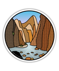 Travel through The Narrows of Zion Canyon! The narrowest part of the canyon at Zion National Park, hikers have to wade along the Virgin River with walls of rock towering above.