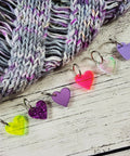 If you❤️ knitting, you'll ❤️❤️ these happy heart-shaped stitch markers in six vivid colors cut from durable acrylic. They're perfect for brightening up knitwear or crochet projects and make adorable charms to hang from our Heart Stitch Marker Holder. so share the love and wear your heart(s) on your sleeves, or collars, or wherever you want to pin them!