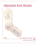 Adult sock blockers adjust approximately from Women’s size 4 to Men’s size 13