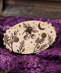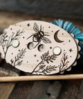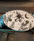 Knitting And Crochet Row Counter. Bee With Stars And Moon And Plants Made From Cherry Wood. Turn The Dials To Keep Progress Of Your Rows A row counter is an important tool for any knitter or crocheter out there. This counter features a flying bee with the moon and stars and forest plants. This oval knitting and crochet row counter is made is made from cherry wood and contains two numbered wheels which are rotated to keep count of the finished rows. Numbers can go from 0-99. This tool measures 2.4 inches tall and 3.8 inches wide. There are two brass chicago screws to make it complete. *This counter does not have a locking mechanism. To loosen or tighten, turn the phillip head screws on the back until you find your right tension. *Since each piece of wood is unique, item you receive may be slightly different from photos.