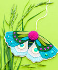 This DIY ornament kit includes all the materials you need to make a blue moth ornament (except for glue, scissors and scalloped shears). The pattern is preprinted onto transfer material, so all you have to do is stick it on the felt and cut out the pieces. Then you are ready to assemble this beautiful ornament. Designed by Lolli and Grace.