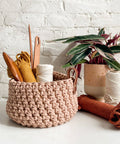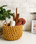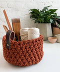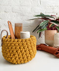 Change up the typical crochet basket with fabulous 5mm cotton rope and a little leather handle for a modern and clean look. The natural texture and reflective nature of the rope, plus it's sturdy structure, make this the perfect basket for all the things! Make it up quickly in a couple of hours, full pattern video and instruction includes tips on how to make it even bigger! Basket measures 10" wide x 5" high. Kit Includes: :: Two 100' Hanks 100% 5mm Cotton Rope :: One 7" Leather Strip (Pre-punched, 1" wide) :: One 20mm Chicago Bolt :: One Size P 11.5mm Plastic Crochet Hook :: Chelsea Rope Basket Pattern (includes link and password to how-to video)