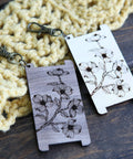 Dogwood Tree Flowers Spinners Control Tool. This WPI (Wraps per Inch) Ruler is made from walnut (dark) or maple (light) wood and is used to identify the gauge of a yarn.