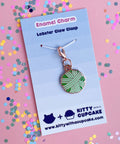 A mint green yarn ball to add to your crochet or knitting projects as a progress keeper. You can also use it as a zipper pull or a charm on keychains!