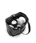 How do you keep your knitting projects and skeins of yarn organized? Hiba is a beautiful mini shopper, ideal for the tasteful knitter. With Hiba, you get a sophisticated bag with space for your projects, as well as room for leather cases in different sizes to neatly store your needles and notions wherever you’re going.