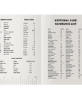 - knitting and parks reference pages in the back