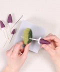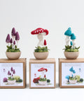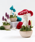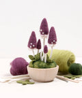 Adorned in ruffles and dainty dots -this family of fungi is the easiest of our mushrooms to make! The Pixie Parasol needle felting kit includes all the supplies to make your own mushroom family: felting needle, foam cushion, roving, cotton stems, felt accents, dowel and a wood turned bowl. You will need scissors or wire cutters. Glue is optional. A helpful instruction sheet includes step by step instructions that even a beginner can use!