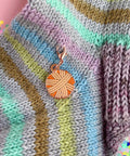 An adorable orange yarn ball to use as a stitch marker on your knitting projects! The lobster claw clasp means it works great as a progress keeper.