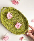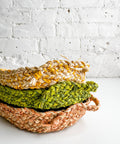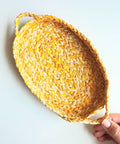 The small, adorable and adaptable Tyler Tray is a fabulous foray into basket making. Start with making an easy braid of raffia and curl and stitch it into a charming little dish with handles. Once you learn how to coil and stitch this basket, you can try all sorts of shapes and sizes. Kit comes with an easy-to-follow pattern as well as step-by-step video so you can learn whatever way works best. Pattern includes two different basket heights. Kit includes :: Two 50g bundles of raffia (some combination of Flax & Twine Raffia or Dyed Madagascar Raffia as shown in options photos) :: Flax & Twine Sharp Darning Needle :: Flax & Twine Japanese-Style Clippers :: Flax & Twine 14x17 Large Muslin Bag :: Tyler Tray Basket Pattern and Video Tray measures 10" long x 6.5" wide and 1.25 - 1.5" tall depending on whether you make short-sided tray or taller tray.