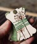 Dandelion needle keeps minder made from maple wood and a brass swivel. This needle keeper has the ability to hold small amounts of thread on the front and back and swivels to get to the Merino wool felt that the needles stick into. There are 3 layers of felt to keep needles. Keeps all of your project needles in one cute place while you stitch away. Great for sewing, quilting, needlepoint, embroidery, and cross stitch.