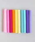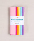 Benzie Design felt is a blend of 20-35% merino wool with the rest rayon. Merino wool fibers are prized not only for being soft but also strong which make this felt sturdy and resistant to pilling. Grab a pair of scissors and start crafting with a rainbow of colors!