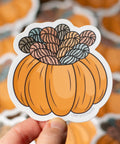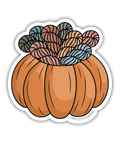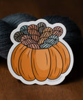 Celebrate the season and your love of fiber with this pumpkin sticker! Featuring a pumpkin overflowing with skeins of yarn, this sticker is a fun reminder that fall is the perfect season for making. ITEM DETAILS * Resistant to scratches, water, and sunlight so you can put it pretty much anywhere! * 3 inches wide - the perfect size for your notebook, water bottle, or laptop